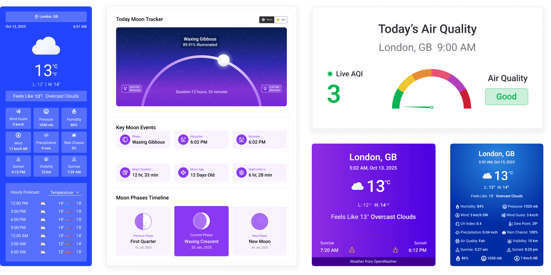 Help your users track temperature changes, humidity levels, and AQI shifts—all in one interactive view. Help your users track temperature changes, humidity levels.