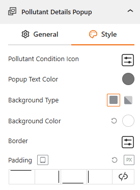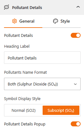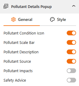 - Pollutant Details Popup: Use this toggle to show the Pollutant details as a pop-up.