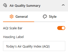 - Heading Label: Enter a custom title for the summary section (e.g., “Today’s Air Quality Index”).
