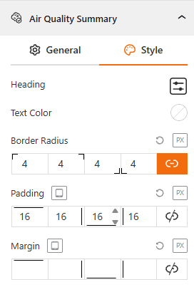 - Pollutant Heading, Label & Value Typography: Customize the font family, color, size, weight, and style as you want.