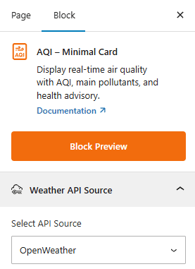 - Custom Weather Search: Use this toggle to enable a front-end weather search bar, allowing users to look up air quality for different locations.