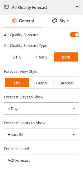 - Forecast Label: Enter the title of the forecast section (default: “AQI Forecast”).