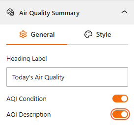 - Heading Label: Enter a custom title for the summary section (e.g., “Today’s Air Quality”).