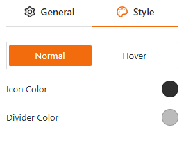 - Normal/Hover Tabs: Switch between styling options for the default (Normal) and mouse-over (Hover) states of the button.
