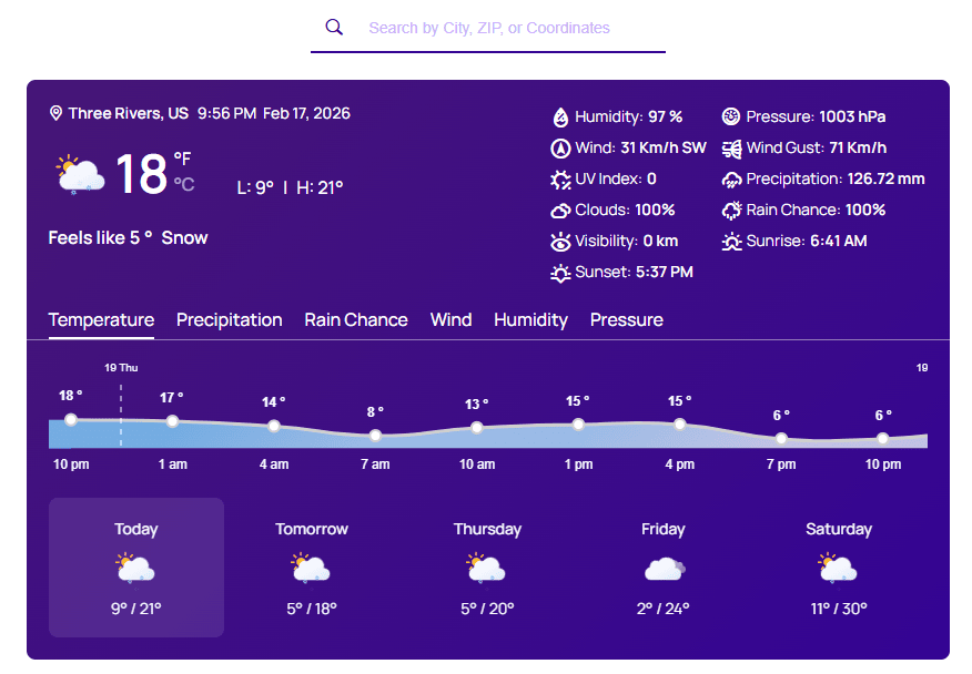 The Custom Weather Search is a child block designed to help your users search for any specific or custom weather updates or information for any location worldwide. It gives your visitors a more interactive experience, letting them get a personalized weather forecast directly from your website.