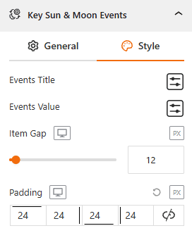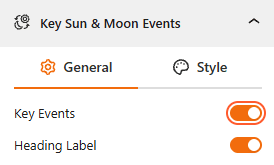 From this style panel, you can add style to the Key Sun & Moon Events as you wish.