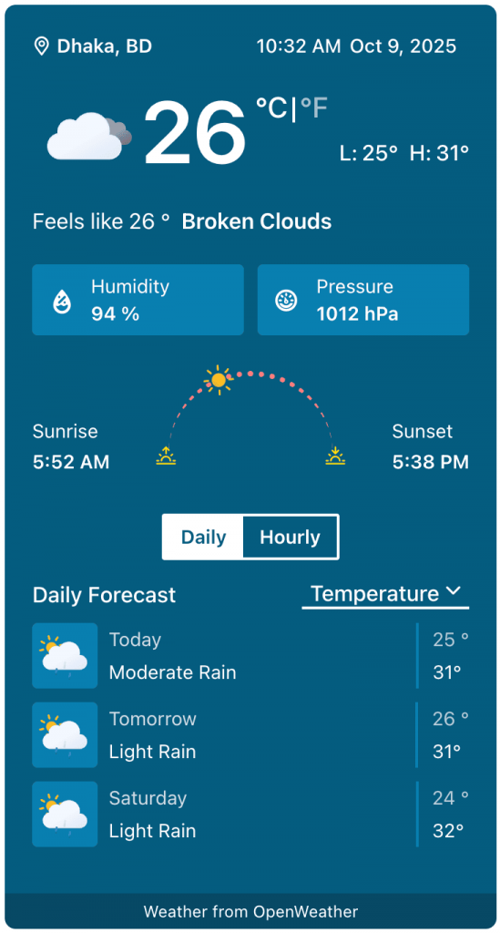 - Location Flexibility – Show weather for a specific city, user’s location.
