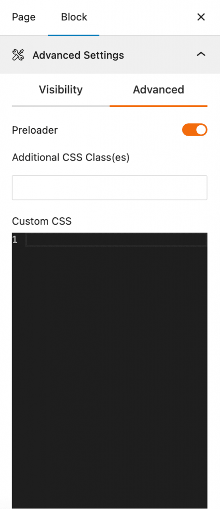 - Custom CSS: A code editor to add custom CSS rules directly to the block.