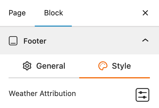- Weather Attribution: Provides a settings icon to open additional style options for the weather attribution text.