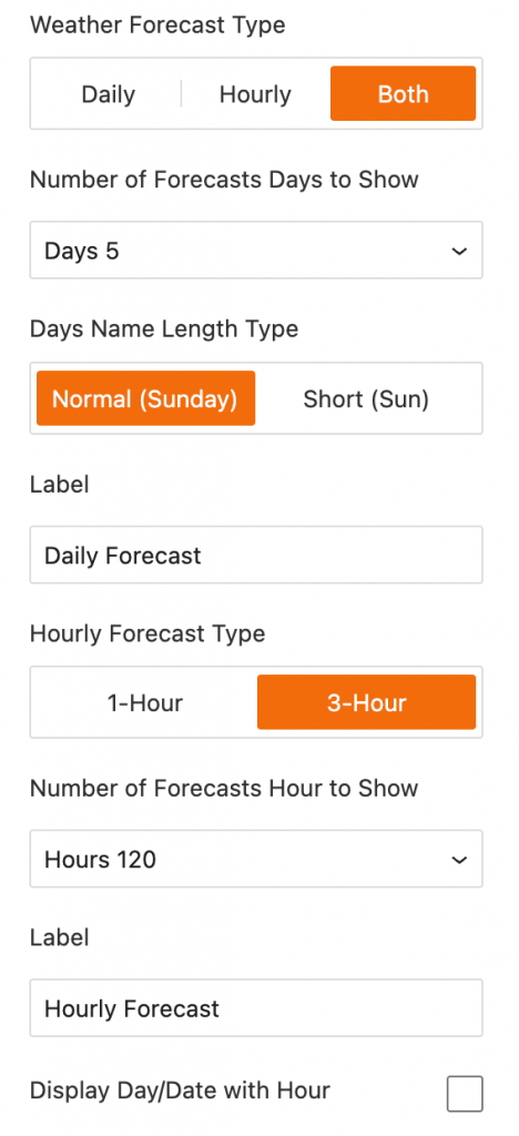 - Weather Forecast Type: Select whether to show a “Daily,” “Hourly,” or “Both” types of forecasts.
