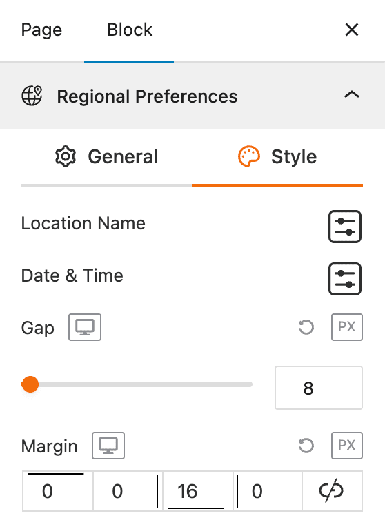 - Margin: Controls the outer spacing around the entire regional preferences block.