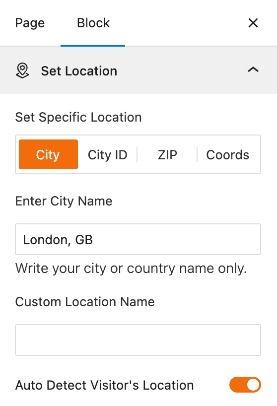 - Custom Location Name: Add a custom label to show instead of the default city name.