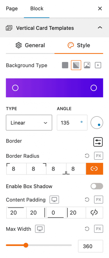 - Max Width: Set the maximum card width to ensure it fits perfectly within your page layout.