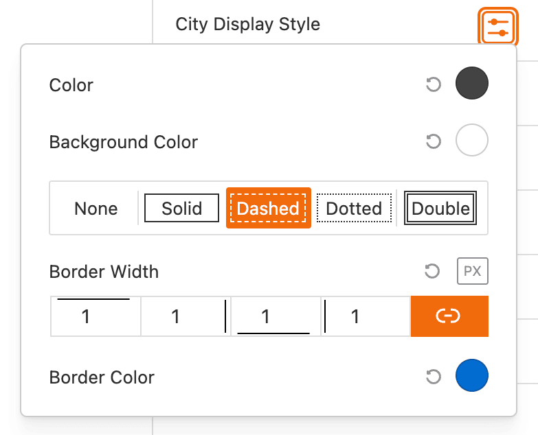 - Border: This option provides controls to add and customize a border around the block.