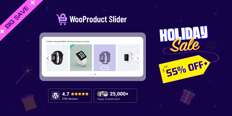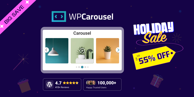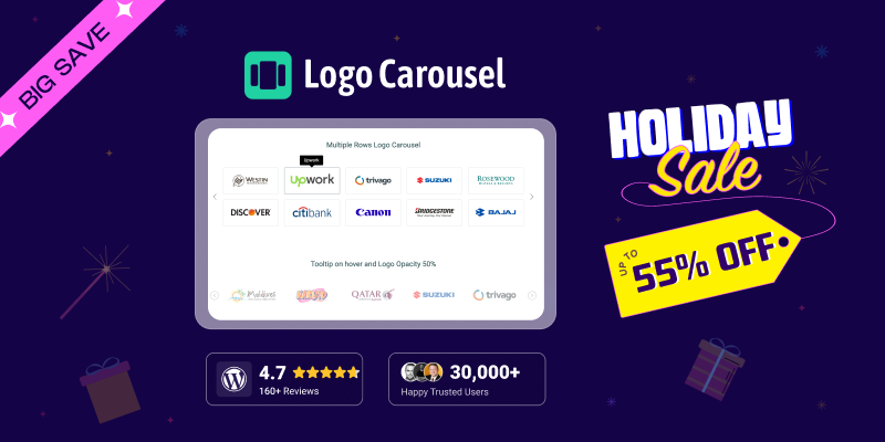 From Carousel, Accordion, Post Show, Testimonials, and Weather Plugin for WordPress to Modern Product Gallery, Custom Product Tabs, Product Slider, Category, and Brands Logo Showcasing plugins, all of the Top plugins with huge New Year discounts, allowing you to Save More, build a Smarter WordPress business site for the Holiday.