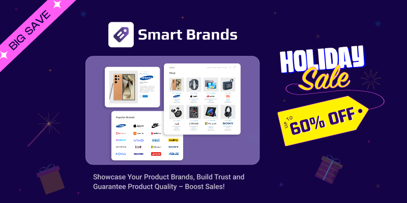 Highlight the well-known brands on your WooCommerce store to build credibility. Smart brands help you to display your top brands’ logo in beautiful carousels, sliders, or grids to increase customer confidence and drive conversions.